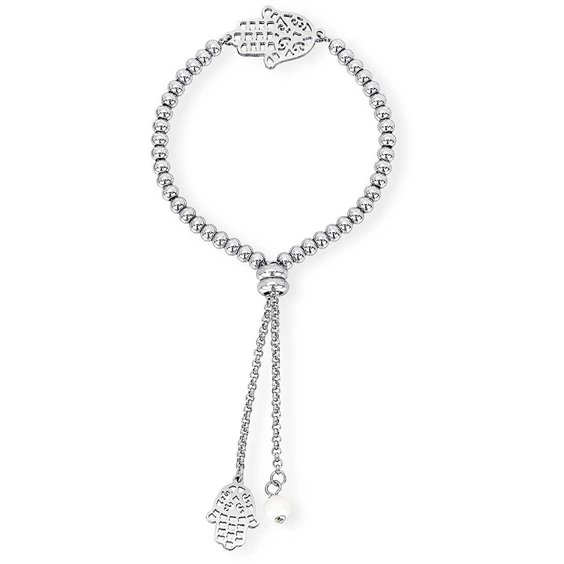 Bracciale Da Donna Di 2Jewels Della Collezione Preppy. Bracciale In Acciaio 316L Con Dettagli A Forma Di Mano Di Fatima E Una Perla.