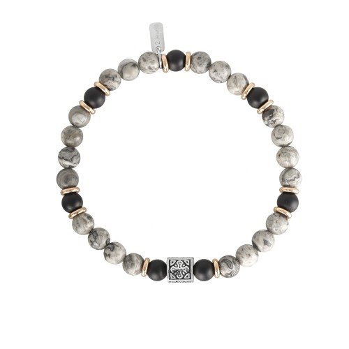 BRACCIALE IN ACCIAIO 316L, PVD NERO E PIETRE NATURALI DIASPRO E ONICE