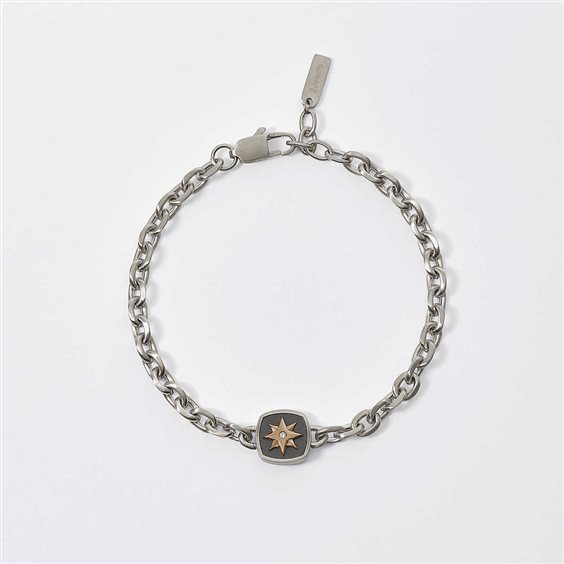 Bracciale Da Uomo Di 2Jewels Della Collezione Navy. Bracciale In Acciaio 316L Con Catena Forzatina Larghezza 5.20 Mm, Ciondolo Rosa Dei Venti 12X12 Mm Con Pvd Nero E Rosé, Cristalli Bianchi Ø 1.50 Mm. Lunghezza Regolabile Da 19 A 21 Cm.