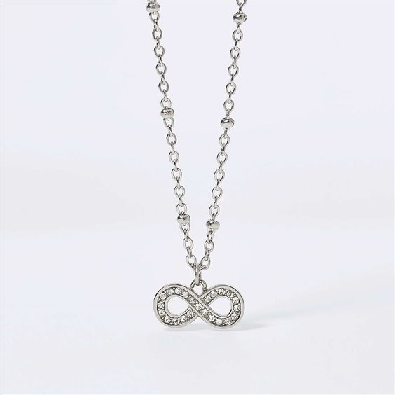 Collana Da Donna Di 2Jewels Della Collezione Lady Ikon. Girocollo In Acciaio 316L Con Sfere Ø 1.95 Mm, Ciondolo Infinito 17.25X8.20 Mm E Cristalli Bianchi Ø 1.25 Mm. Lunghezza Regolabile Da 38 A 43 Cm