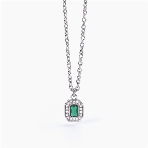 Girocollo in acciaio 316L con catena forzatina e ciondolo pendente smeraldo sintetico 6x4 mm e cristalli Ø 1.25 mm. Lunghezza regolabile da 38 a 43 cm.
