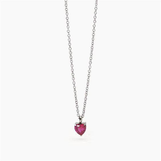 Girocollo in acciaio 316L con catena forzatina 1.5 mm e rubino sintetico taglio cuore 6x6 mm, lunghezza regolabile da 40 a 45 cm