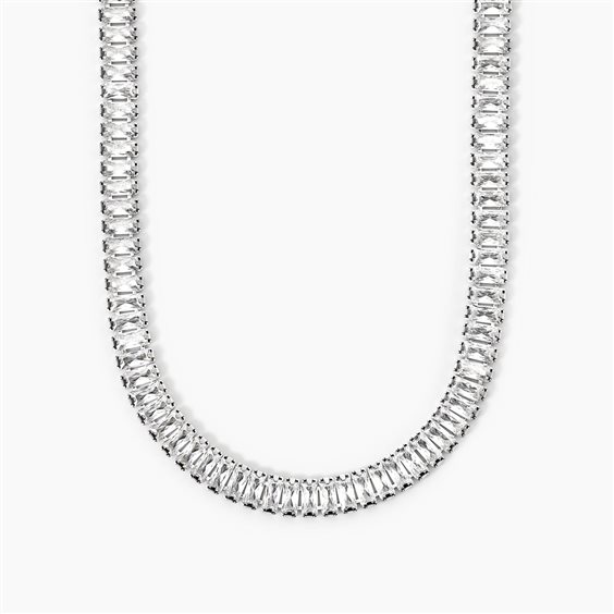 Choker tennis in acciaio 316L con zirconi bianchi taglio baguette 2x4 mm, lunghezza regolabile da 33 a 40 cm