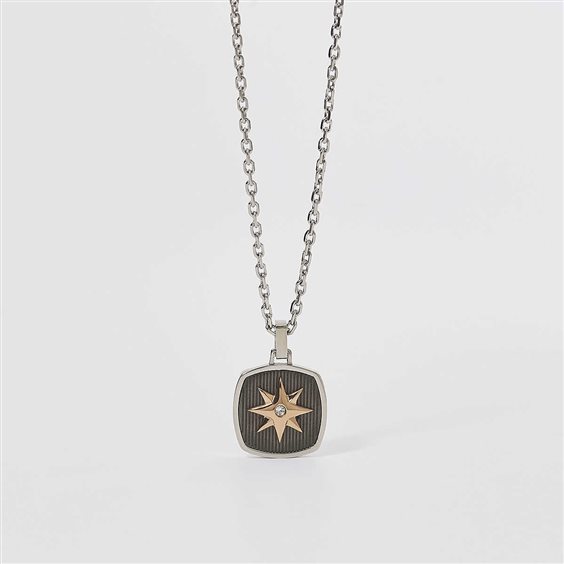 Collana Da Uomo Di 2Jewels Della Collezione Navy. Collana In Acciaio 316L Con Catena Forzatina Larghezza 2.10 Mm, Ciondolo Rosa Dei Venti 16.50X16.50 Mm Con Pvd Rosé E Gun Metal E Cristalli Bianchi Ø 1.75 Mm. Lunghezza Cm 50