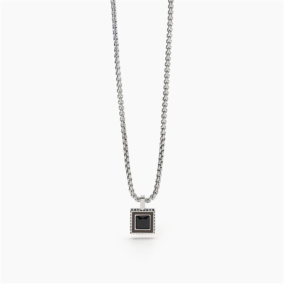 Collana in acciaio 316L con catena veneta 2 mm, pendente quadrato 8x8 mm con PVD Gunmetal e cristallo nero quadrato 4x4 mm, lunghezza 50 cm