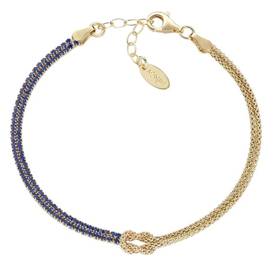 Bracciale Nodo d'Amore con Zirconi Blu Bracciale in argento 925 dorato con due catene unite a formare un nodo centrale