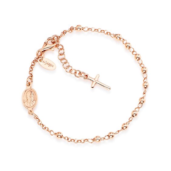 Gioiello Amen, Collezione: Rosarium, Bracciale, Rosario Croce Charm Rosè DIAMETRO SFERE MM 3 Questo bracciale verrà spedito con Scatola Originale Amen + GARANZIA.