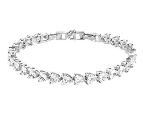 Bracciale Tennis Cuori Zirconi Bianchi - Bracciale in Argento 925 e zirconi bianchi - Rodio - Lunghezza 16 + 2 cm