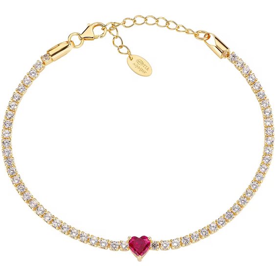 racciale da donna di Amen della collezione Tennis. Bracciale in argento 925 zirconi bianchi e rossi . Bracciale in argento dorato. Lunghezza: 16+3cm . Diametro charm: 5mm