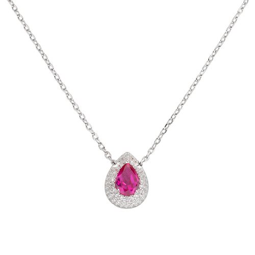 Collana in AG925 zirconi bianchi e rossi - Rodio - Lungh. 40+5cm - Charm H. 1,2cm - corredato da shopper, scatola e garanzia