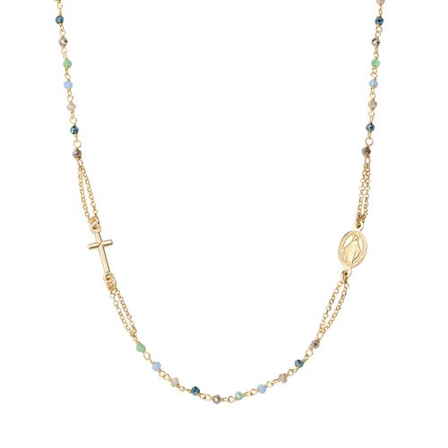 Collana in AG925 e cristalli multicolor - Oro - Lunghezza 44+4cm - grani Ø 2,5mm