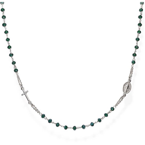 Collana in AG925 e e cristalli verde bottiglia - Rodio - (Lungh. 50+2cm - grani Ø 3mm)