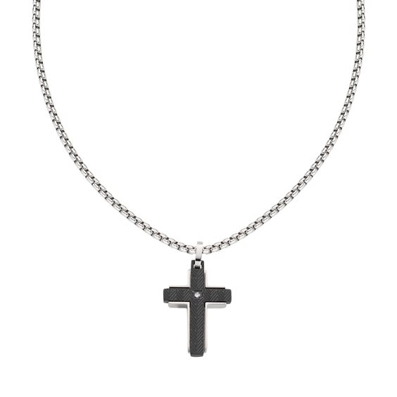Collana Croce in Acciaio e Zircone - Collana in acciaio 316 e zircone bianco - Pvd Nero - Lunghezza 47 + 3 cm