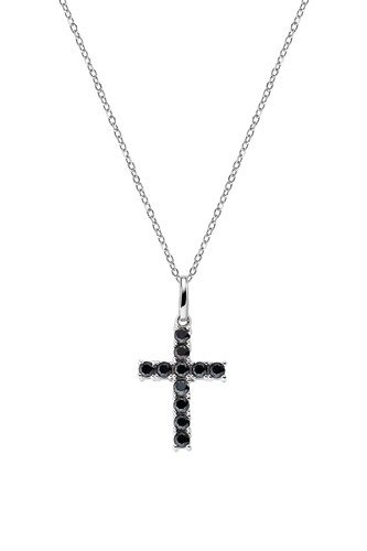 Collana in AG925 e zirconi neri - Rodio - (Lungh. 42+5cm - croce h. 2cm)