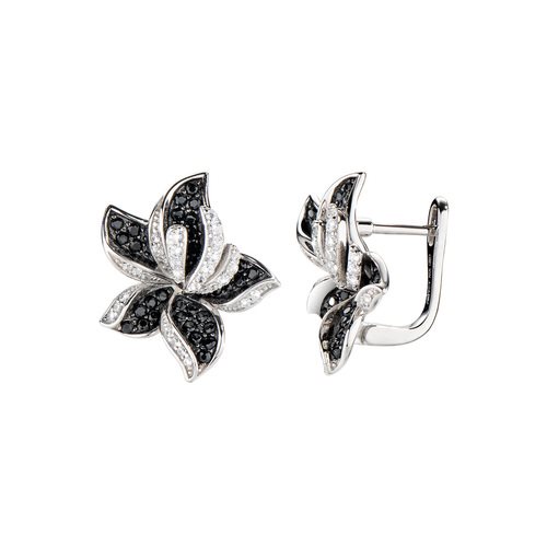 Orecchini in Argento 925 zirconi bianchi e neri - Rodio