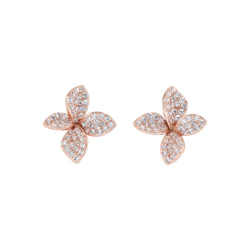 Orecchini Fiore Rosè e Zirconi Bianchi - Orecchini Argento 925 e zirconi bianchi - Rodio/Rosè - Ø 1,5 cm