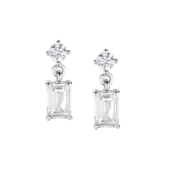 Orecchini Princess con Zircone Rettangolare Bianco - Orecchini in AG925 con zirconi bianchi - Rodio - Lungh 1cm