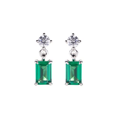Orecchini Princess con Zircone Rettangolare Verde - Orecchini in AG925 con zircone bianco e zircone verde - Rodio - Lungh 1cm