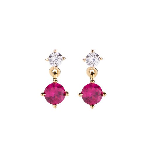 Orecchini Dorati Princess Tondi Rubino - Orecchini in AG925 con zircone bianco e zircone rubino - Oro - Lungh 1cm