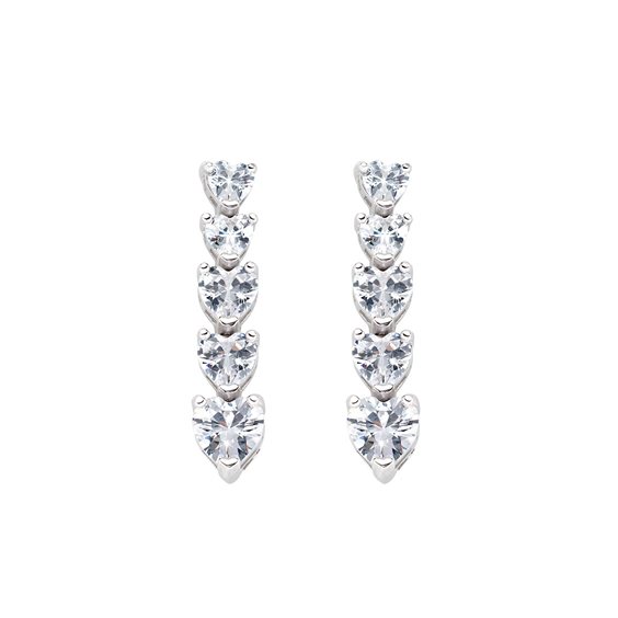 Orecchini Tennis Cuori Zirconi Bianchi Pendenti - Orecchini in Argento 925 e zirconi bianchi - Rodio
