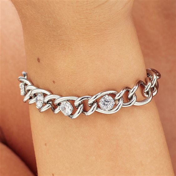 Bracciale catena in acciaio 316L e cubic zirconia.