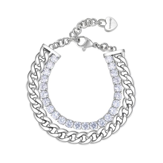 Bracciale tennis doppio filo con catena grumetta in acciaio 304 e cubic zirconia white