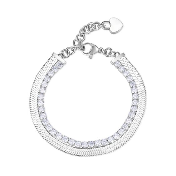 Bracciale tennis doppio filo con catena flat snake in acciaio 304 e cubic zirconia white