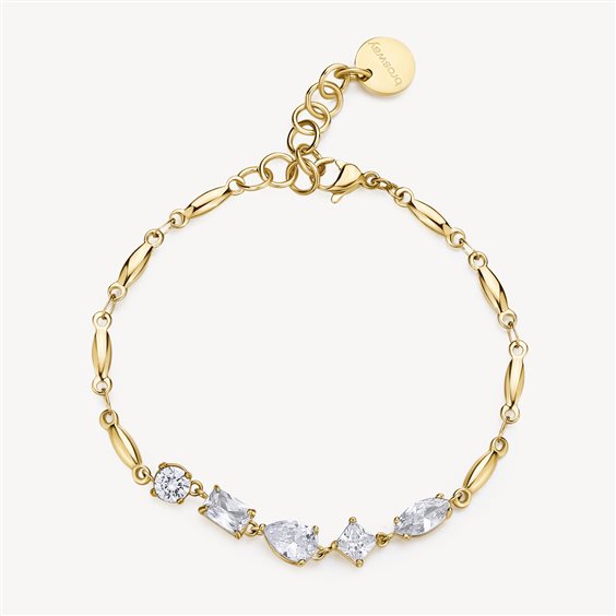 Bracciale semirigido in acciaio 316L, finitura pvd oro 14K e cubic zirconia.