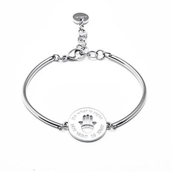 Bracciale Brosway da donna collezione Chakra. Realizzato in Acciaio 316L. Piastrina centrale con incisa la mano di Fatima (che rappresenta fede, protezione e femminilità) e la scritta 'everything is possible if you belive' (Tutto è possibile se ci credi).