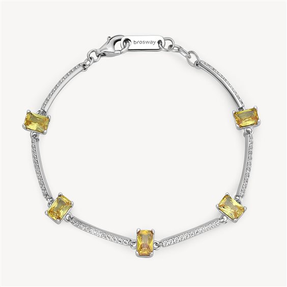 Bracciale semirigido in argento rodiato 925‰ con cubic zirconia chiari e baguette cubic zirconia colore golden yellow.