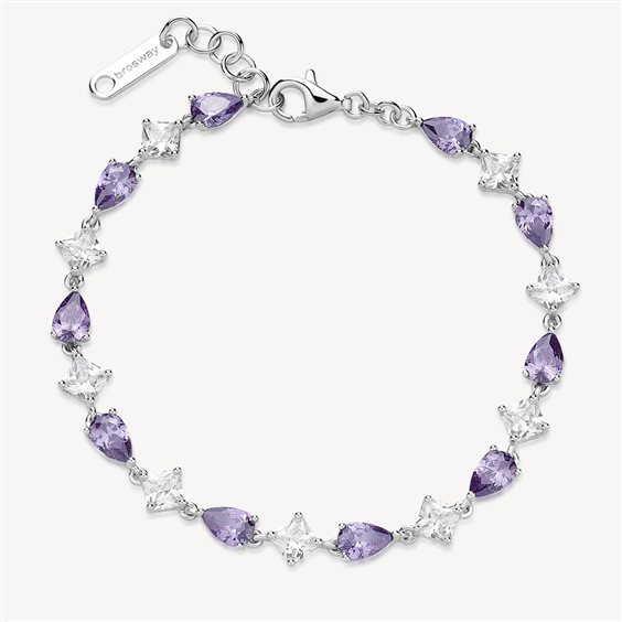 Bracciale in argento rodiato 925‰ con square cubic zirconia e pear cubic zirconia colore amethyst.