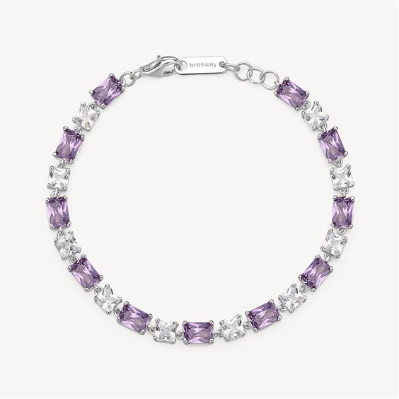 Bracciale in argento 925. Zirconi bianchi e viola. possibilità di prolunga fino acm 21.