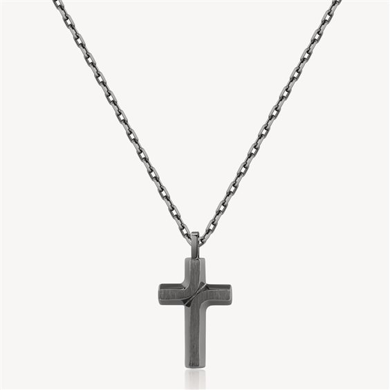 Collana in acciaio 316L, finitura color rutenio lucido e satinato e pendente a forma di croce.