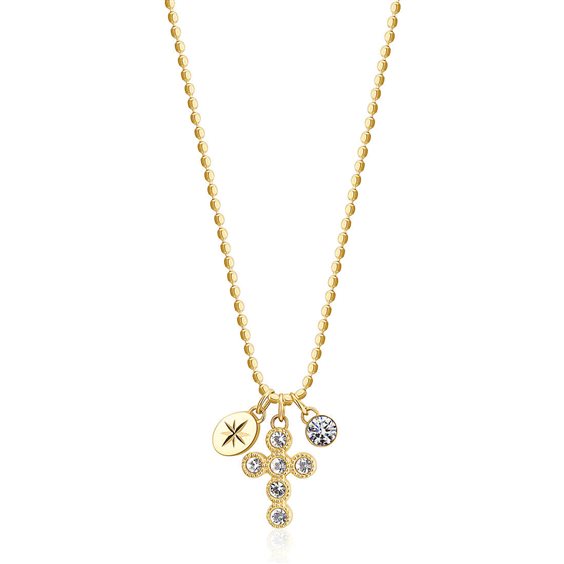 Collana Da Donna Di Brosway Della Collezione Chakra. Gioiello In Acciaio Con Finitura In Oro Con Cristalli Crystal. Simboli: Croce. Significato: Croce – Libertà, Salvezza, Serenità. Lunghezza: 800Mm E Peso: 5.80Gr.