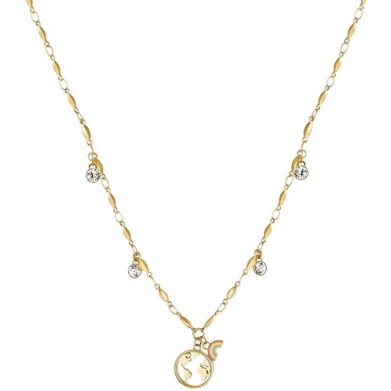 Collana Da Donna Di Brosway Della Collezione Chakra. Collana Chakra In Acciaio 316L, Con Finitura Oro Con Globo, Smalti Colorati E Cristalli Crystal. Lunghezza: 440 Mm. Peso: 6,2 G.