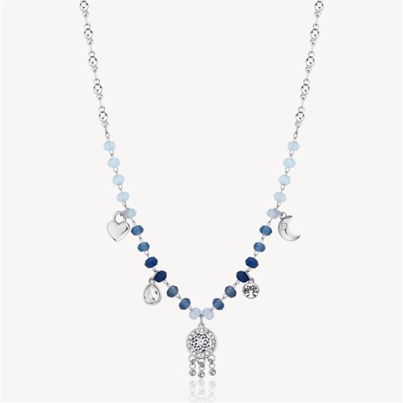 Brosway Collana Acciaio Multi Charm Mistici Chakra La referenza BHKN082 è una Collana girocollo in acciaio 316L, con calcedonio multicolore blu, pendenti a forma di acchiappasogni, cuore, luna e cristalli della Linea Chakra SERENITÀ, PROTEZIONE, SPERANZA Oggetto capace di cullare la persona nei sogni positivi e proteggerla da quelli negativi. L'acchiappasogni fa in modo che i pensieri felici e le energie positive passino attraverso il proprio centro e arrivino fino alla mente durante il sonno. Misura 45+3 cm