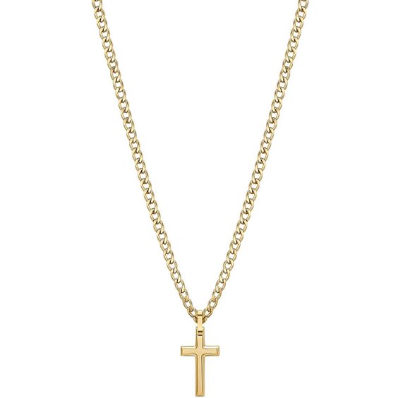 Collana Da Uomo Di Brosway Della Collezione Ink. Collana Ink In Acciaio 316L, Finitura Oro Con Pendente Croce. Lunghezza: 500 Mm. Peso: 8,9 G.