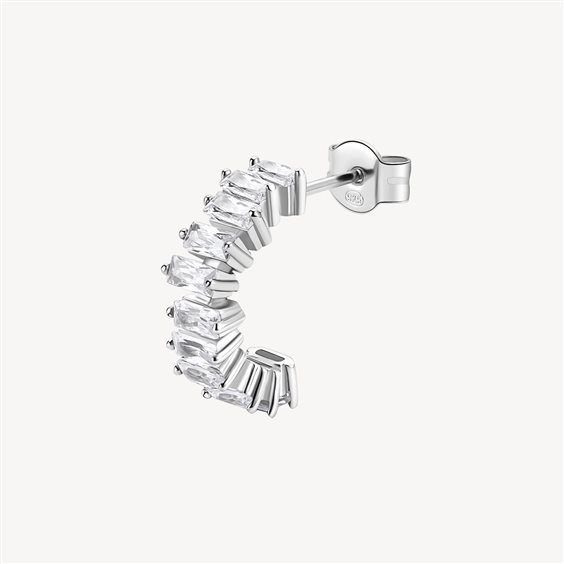Orecchino a cerchietto in argento rodiato 925‰ con baguette cubic zirconia.