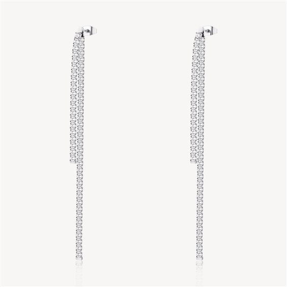 Orecchini pendenti due fili in acciaio 304 e cubic zirconia bianchi.