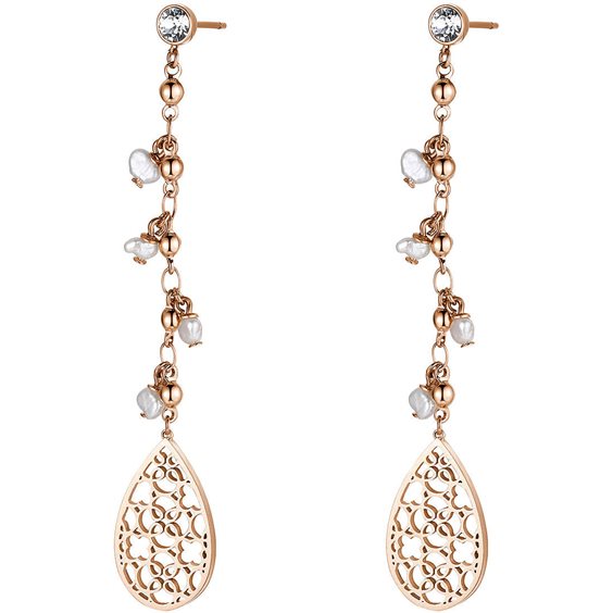Orecchini Da Donna Di Brosway Della Collezione Tailor. Gioiello In Acciaio Con Finitura In Oro Rosa Con Perle. Lunghezza: 75Mm E Peso: 1.80Gr.