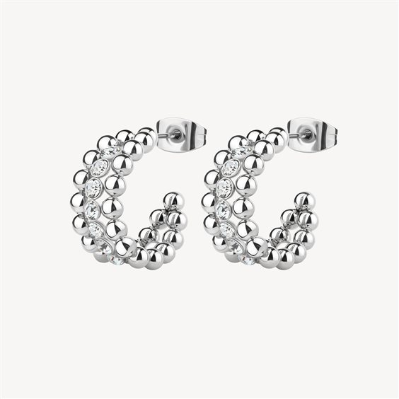 Orecchini a cerchio in acciaio 316L e cristalli.