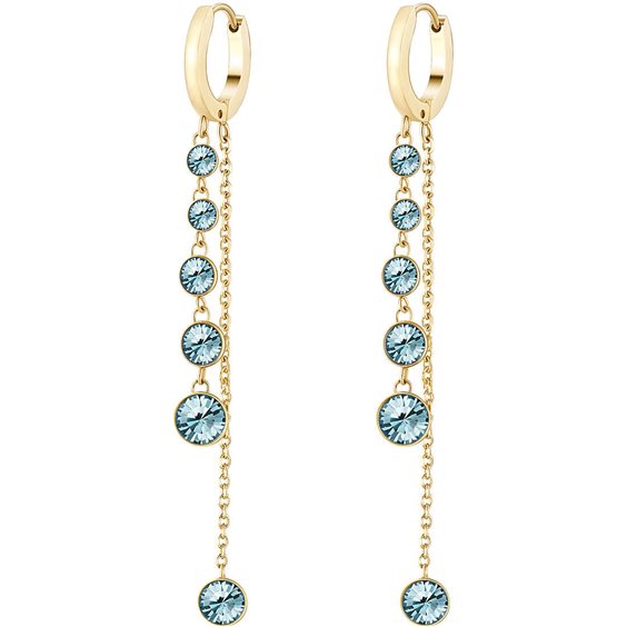 Orecchini Da Donna Di Brosway Della Collezione Symphonia. Gioiello In Acciaio Con Finitura In Oro Con Cristalli Smoked Sapphire. Lunghezza: 45Mm E Peso: 4.10Gr
