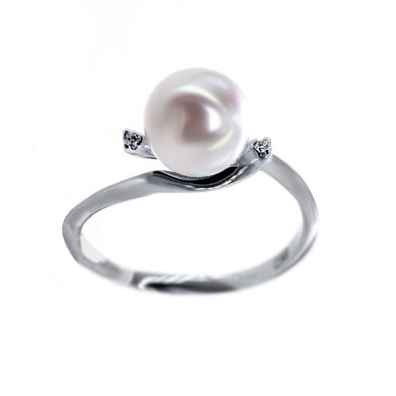 Davite&Delucchi Gioielli Anello con Perla Naturale e Diamante : Perla :8.0 mm. Brill.:0.02 G/SI Mis. 13