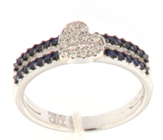 ANELLO IN ORO BIANCO 18KT. CON DIAMANTI TAGLIO BRILLANTE E ZAFFIRI BLU TAGLIO BRILLANTE