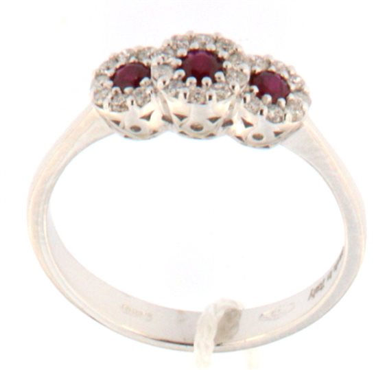 ANELLO ORO 18KT. CON DIAMANTI TAGLIO BRILLANTE RUBINI TAGLIO BRILLANTE
