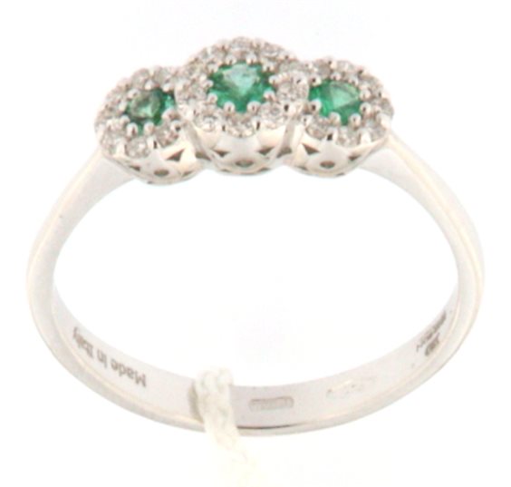 ANELLO IN ORO 18KT. CON DIAMANTI TAGLIO BRILLANTE E SMERALDI
