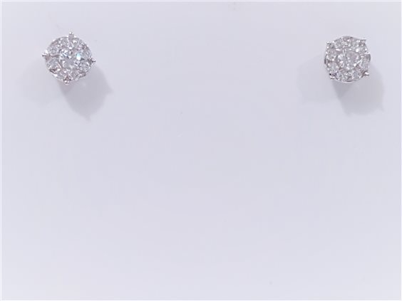 Orecchini punto luce Davite & Delucchi in oro bianco 18KT. con 2 diamanti centrali di 0.22 ct. e laterali di 0.31 ct., classe di colore G e purezza VS. Chiusura a farfalla.
