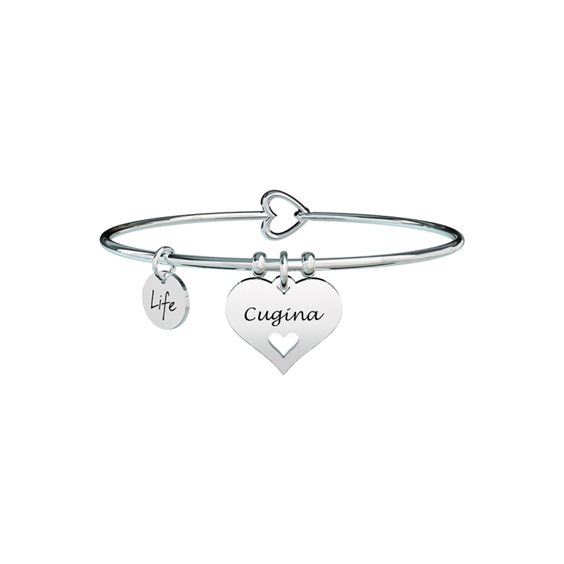 Bracciale Kidult in acciaio con ciondolo a forma di cuore con inciso Cugina. Più di un'amica, come una sorella. Ti voglio bene"