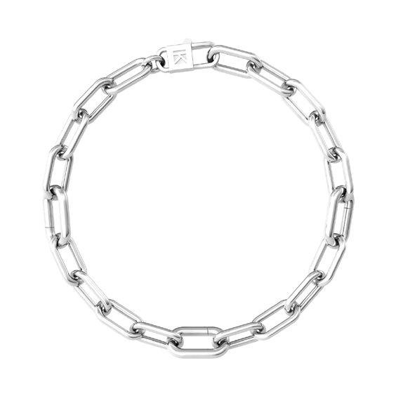 Bracciale in acciaio 316L, lunghezza 18.5 cm, con catena allungata e tre link apribili. Dimensioni: catena 6 mm, link Ø 7.5 mm