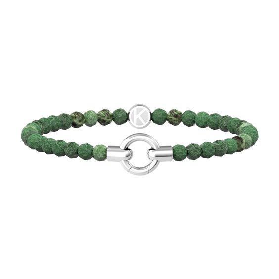Bracciale in acciaio 316L lunghezza 17 cm con link apribile e agata verde striata. Dimensioni: link Ø 12 mm, agata Ø 4 mm